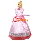 Adult Women Princess Cosplay Costume Halloween Pink Peach Fancy Dress With Crown