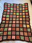 Granny Square Crochet Afghan Blanket Throw Roseanne Style 60x48 Multicolor Black