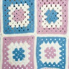 Granny Square Afghan Sofa Throw 56x56 Blue Mauve Hand Crochet Blanket