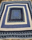 Handmade Crochet Granny Square Afghan Blanket Blue White Queen 84"x84”