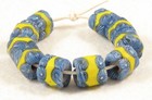 14 Old Venetian Millefiori Yellow And Blue Banded Glass African Trade Beads