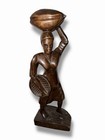 African Figure Art Wooden Carved Statue Tribal Wood ? Woman Carrying Water Jug
