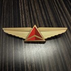 Delta Airlines Vintage Pilot Wings Pin Red Triangle Logo Gold Flight Crew Badge