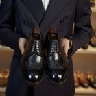 Men Dress Shoes Leather Lined Lace Black Brown Wooden