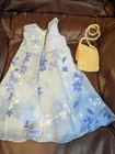 18" American Girl Doll Lilac Meet Dress Set W/ Curlers, Pc Hairbrush, Blue Cape