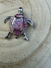 Sea Turtle Lab Pink Opal Inlay Pendant Charm Sterling Silver Reptile Ocean Gift