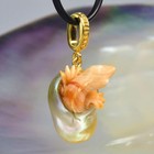 Lizard In A South Sea Pearl Pendant Carved Apricot Shell Vermeil Sterling 6.44g