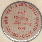 1974, Marshall, Illinois, Ira F. & Ruth Cooper, 25th Anniversary, Wooden Nickel