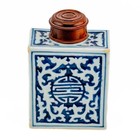 Antique 19thc Chinese Blue & White Ginger Jar Tea Caddy - Double Brass Handles