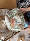 Antique 19thc Chinese Famille Rose Bulb Bowl Turquoise Hand Painted