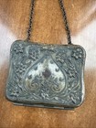 Antique Art Nouveau Silverplate Etched Dance Compact Purse With Chain