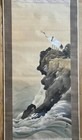 Japanese Hanging Scroll Pine Bird Antique Art With Wear, 200cm Long