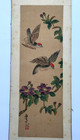 2 Vintage Antique Asian Paintings Flying Perched Birds And Flowers Chinese Art