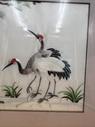 Vintage Asian Silk Embroidery Matted And Framed Art 2 Cranes Longevity Fortune