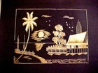 Vintage Antique Black Lacquer Silver Asian Enamel Painting Wall Art Panel Korean