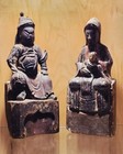 Antique Asian Chinese Or Japanese Wood Carving Statues 2 Figures W/ Some Paint