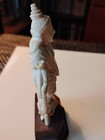 Asian Oriental Figurine Hand Carved 11” Tall W/wood Base Great Condition