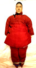 Antique Chinese Carved Wood Pendant Asian "arm Raised" Figure Silk Cord Necklace