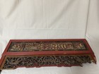 Antique Asian Carved Wood Architectural Panel Fragment Red Lacquer Gilt Estate