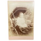 Antique Cabinet Card Photograph Chubby Cute Baby In Carriage Buggy Stroller