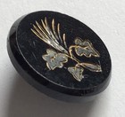 Lovely Antique Black Glass Aristocrat Button W/ Leaves / Plant Life Pictorial