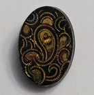 3 Pc Antique Black Glass & Colorful Enamel Button