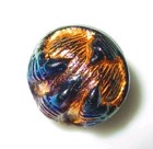 Antique Victorian Black Glass Picture Button W Iridescent Luster Fly Insect