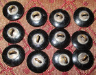 Set 12 Antique Victorian Lacy Black Glass Buttons - 9/16"