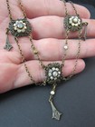Antique Brass Art Deco Purple Czech Glass Ornate Necklace