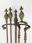 Antique Acorn Brass Bronze Fireplace Tool Set 4 Piece Vtg Mcm Art Deco Decor