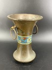 Japanese Handpainted Champleve Antique Brass Bronze Vase Handmade Marked Nippon