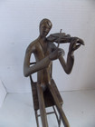 Vintage Mcm Elongated Man Statue Violin Player - Brass/bronze - 8lbs+ 17 1/4"