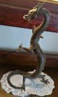 Vintage Asian Folk Art Dragon Sculpture Statue Bronze/brass On Wooden Stand