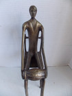 Vintage African Man Brass Bronze Statue Figurine With Basket On Head Estate