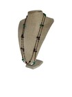 Antique Brass With Green Purple Peking Glass Bead Necklace, Fold-over Clasp 62"