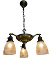 1910-20s Victorian Brass 3 Light Pendant Fixture