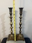 Vtg 14.5” Tall Brass Candlestick Holders Ornate Baluster Patina Mcm Cottagecore