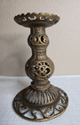 5 1/4" Tall By 3 1/4" Wide Ornate Antique Brass Filigree Tapered Candle Holder