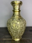 Indian Repoussé Brass Vase Krishna Pastoral Scene Gopis Cows Hindu 9.75” Vintage