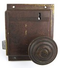 Antique Door Lock Set - Lock Key Brass Knobs & Pressed Steel/ Plates