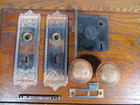 3 Antique Vtg. Victorian Brass Door Knobs, Backplates, Mortise Lock Sets