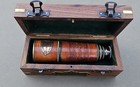 Marine Telescope Nautical Antique Solid Brass Leather Pirate Spyglass Wooden Box