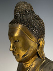 Antique Early Parcel Gilt Bronze Burmese Seated Buddha Figure Repaired
