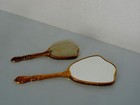 Vintage/antique Ornate Vanity Sets -- Hand Mirror And Brush. 5 Pieces+ Mahogany