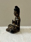 Antique Asian Thai Burmese Wood Carved Gold Gilt Figural Seated Buddha Distress