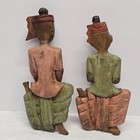 Pair Antique Vtg Carved Wooden Burmese Dressed Thai Marionette String Puppets