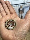 Antique Small Hand Painted Enamel Inlay On Pierced Brass Button