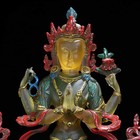 Chinese Old Peking Glaze Glass Carved Four-armed Avalokiteshvara Statue 1755
