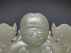 Chinese Antique Old Hetian Jade Hand-carved Boy And Fish Pen Holder Statues