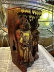Chinese Qing Gilt Lacquer Wood Panel Figure Architectural Carving Antique 19th C